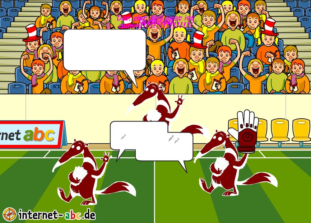 Flizzy, Jumpy, Eddie und Percy spielen Fußball. Male ein schönes Bild und schreibe etwas dazu!