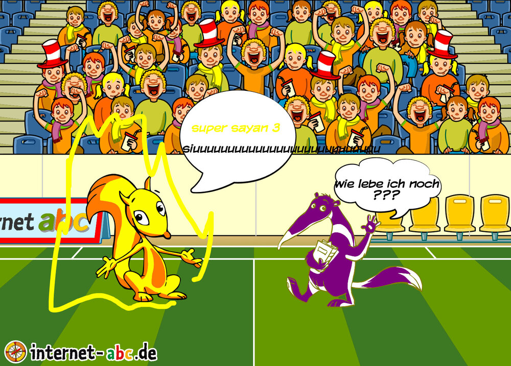 Flizzy, Jumpy, Eddie und Percy spielen Fußball. Male ein schönes Bild und schreibe etwas dazu!