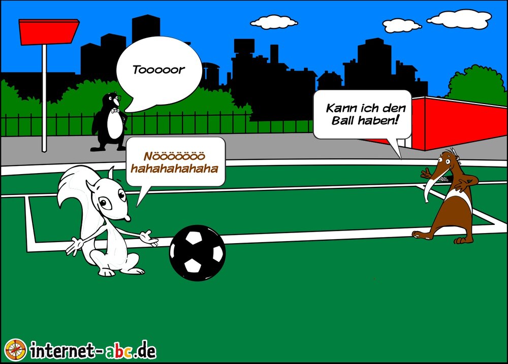 Auf dem Sportplatz gingen 3 Freunde sie spielten Fußball.