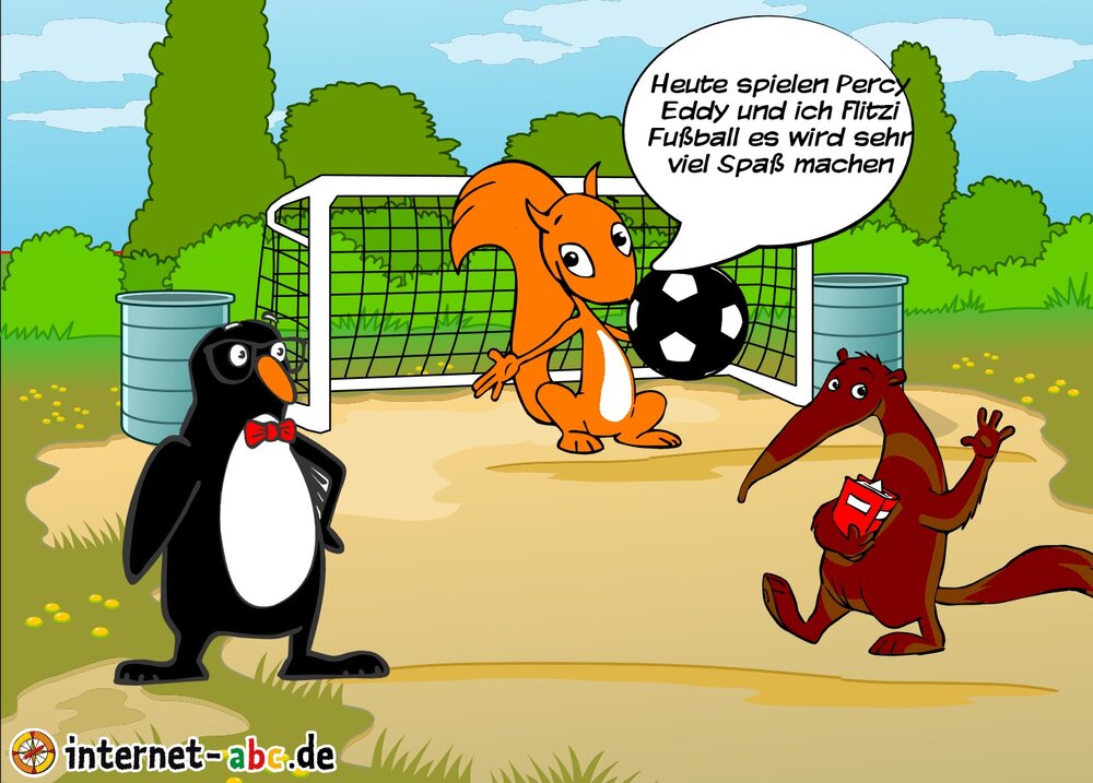 Flizzy, Jumpy, Eddie und Percy spielen Fußball. Male ein schönes Bild und schreibe etwas dazu!