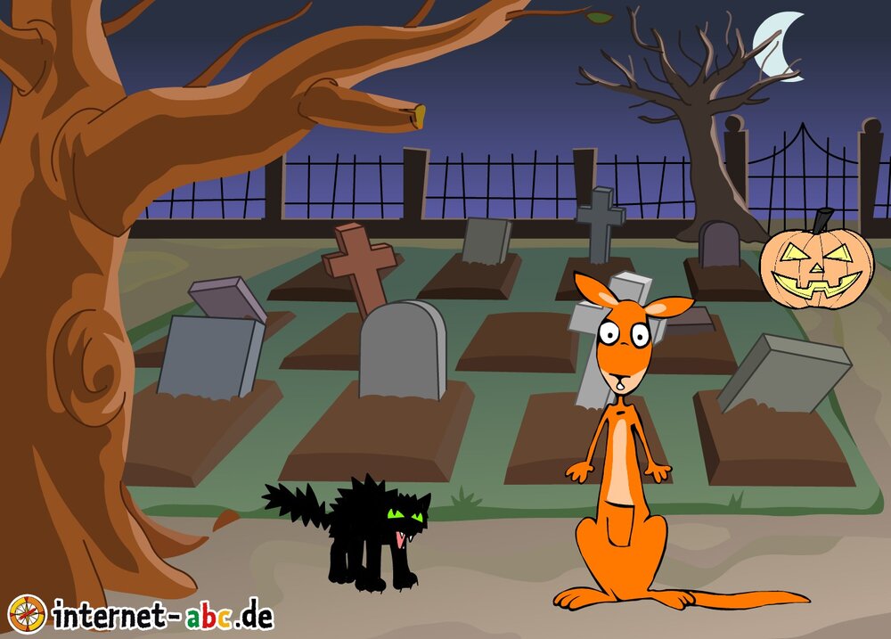 Gruseln mit Eddie, Flizzy, Percy und Jumpy - auf dem Friedhof oder in einem einsamen Schloss! Fledermäuse und Gespenster kreisen um sie herum. Malt Halloween-Bilder und schreibt Geschichten dazu!