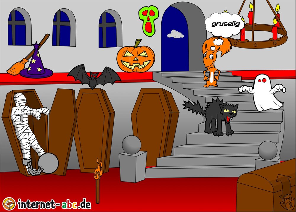 Hier kannst du sehen, welche Bilder es schon zum Thema Halloween gibt. Klicke auf ein Bild oder eine Überschrift, um zur Seite zu gelangen. Dort findest du auch eine passende Geschichte zum Bild.