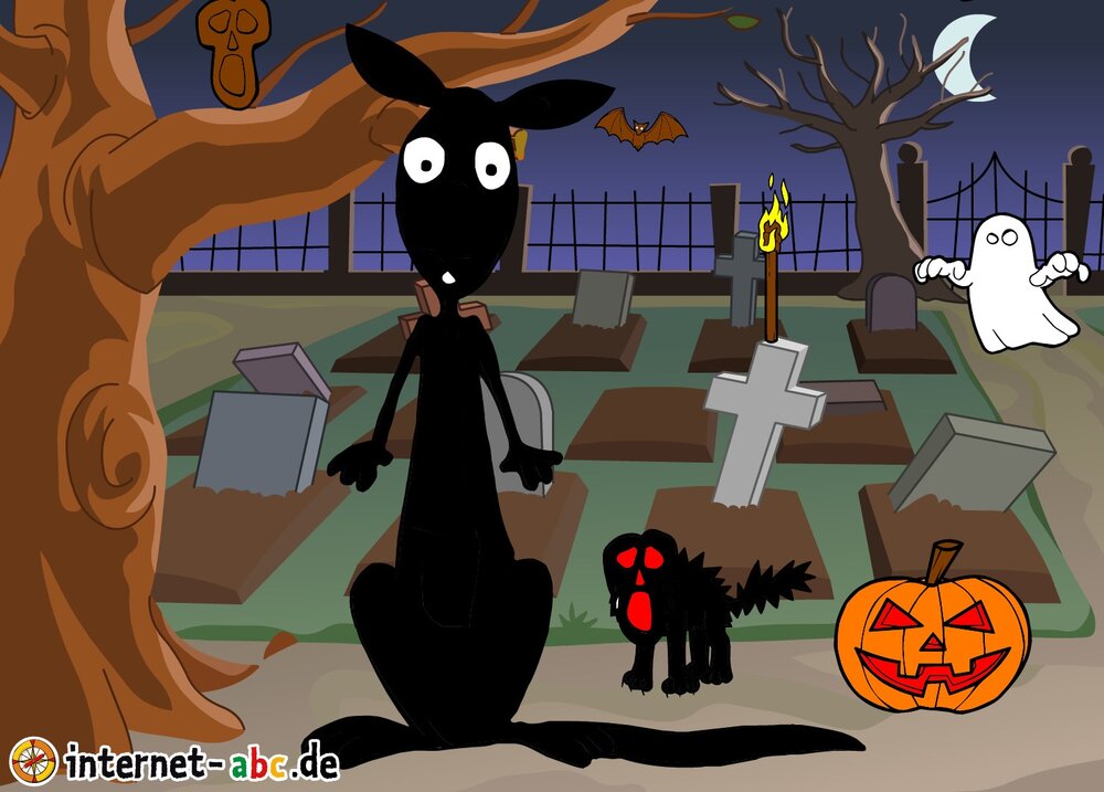 Gruseln mit Eddie, Flizzy, Percy und Jumpy - auf dem Friedhof oder in einem einsamen Schloss! Fledermäuse und Gespenster kreisen um sie herum. Malt Halloween-Bilder und schreibt Geschichten dazu!