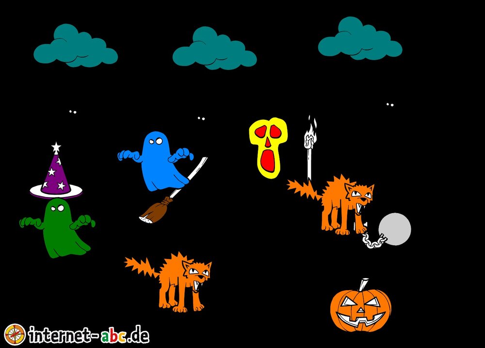 Hier kannst du sehen, welche Bilder es schon zum Thema Halloween gibt. Klicke auf ein Bild oder eine Überschrift, um zur Seite zu gelangen. Dort findest du auch eine passende Geschichte zum Bild.