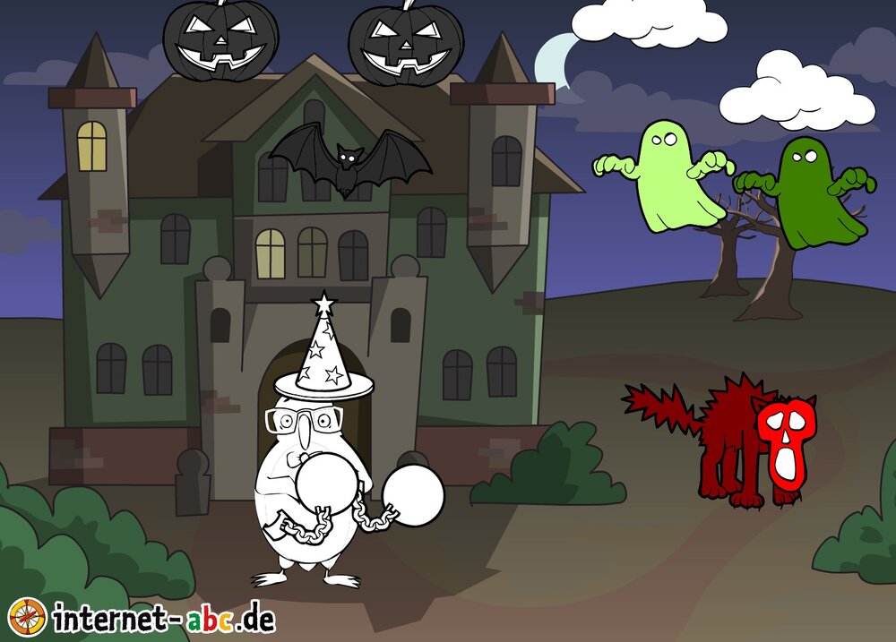 Hier kannst du sehen, welche Bilder es schon zum Thema Halloween gibt. Klicke auf ein Bild oder eine Überschrift, um zur Seite zu gelangen. Dort findest du auch eine passende Geschichte zum Bild.