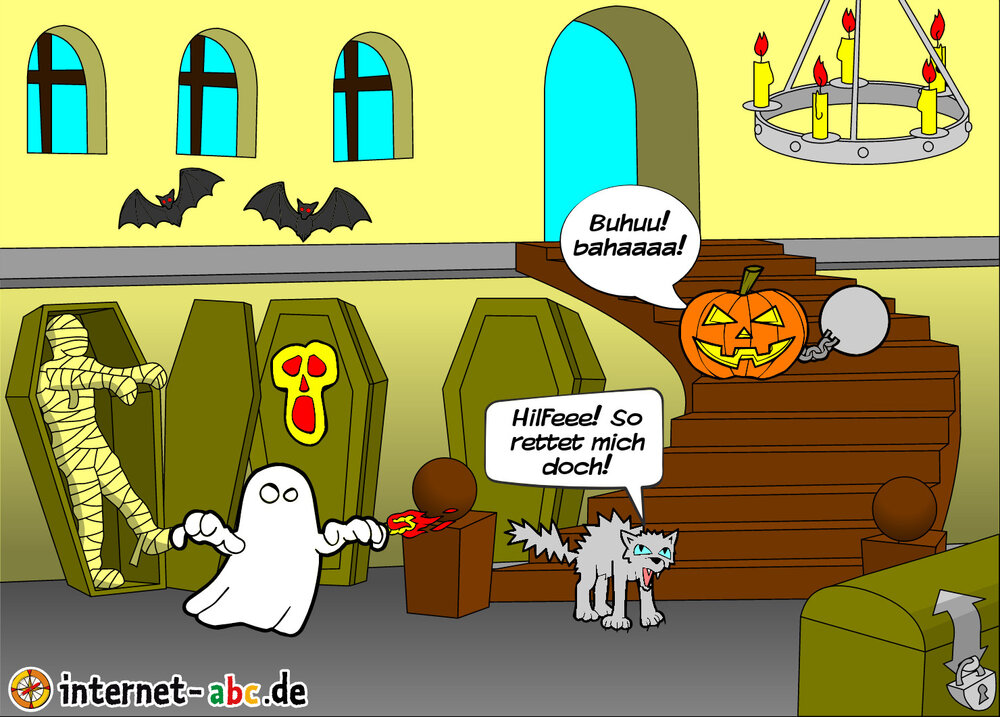 Hier kannst du sehen, welche Bilder es schon zum Thema Halloween gibt. Klicke auf ein Bild oder eine Überschrift, um zur Seite zu gelangen. Dort findest du auch eine passende Geschichte zum Bild.