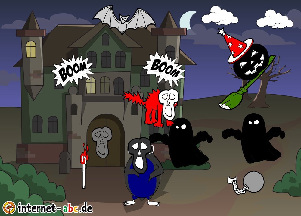 Hier kannst du sehen, welche Bilder es schon zum Thema Halloween gibt. Klicke auf ein Bild oder eine Überschrift, um zur Seite zu gelangen. Dort findest du auch eine passende Geschichte zum Bild.