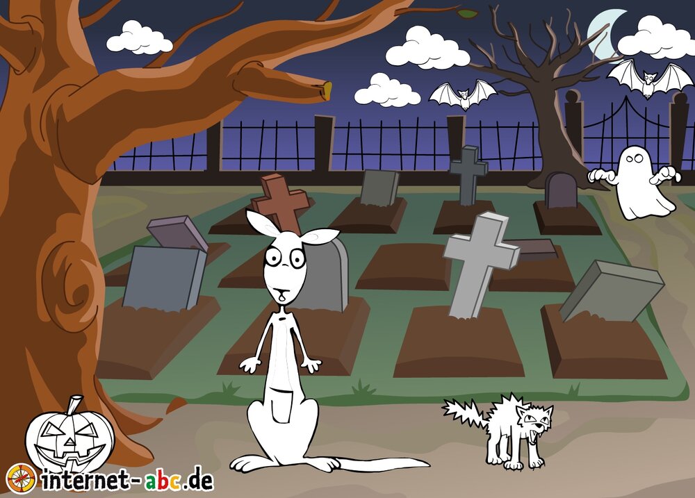 Gruseln mit Eddie, Flizzy, Percy und Jumpy - auf dem Friedhof oder in einem einsamen Schloss! Fledermäuse und Gespenster kreisen um sie herum. Malt Halloween-Bilder und schreibt Geschichten dazu!
