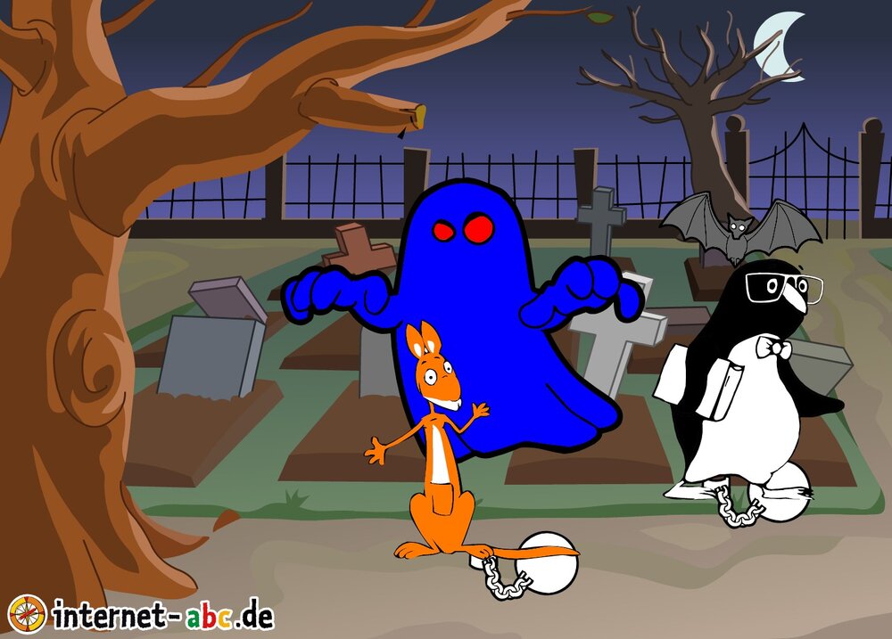 Gruseln mit Eddie, Flizzy, Percy und Jumpy - auf dem Friedhof oder in einem einsamen Schloss! Fledermäuse und Gespenster kreisen um sie herum. Malt Halloween-Bilder und schreibt Geschichten dazu!