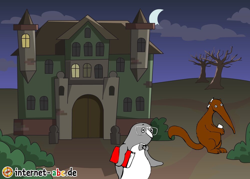 Gruseln mit Eddie, Flizzy, Percy und Jumpy - auf dem Friedhof oder in einem einsamen Schloss! Fledermäuse und Gespenster kreisen um sie herum. Malt Halloween-Bilder und schreibt Geschichten dazu!
