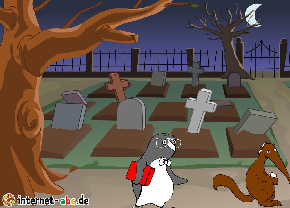 Gruseln mit Eddie, Flizzy, Percy und Jumpy - auf dem Friedhof oder in einem einsamen Schloss! Fledermäuse und Gespenster kreisen um sie herum. Malt Halloween-Bilder und schreibt Geschichten dazu!