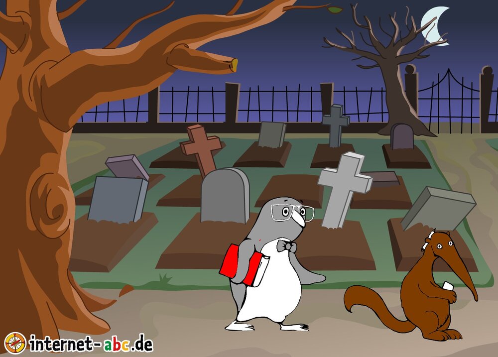 Gruseln mit Eddie, Flizzy, Percy und Jumpy - auf dem Friedhof oder in einem einsamen Schloss! Fledermäuse und Gespenster kreisen um sie herum. Malt Halloween-Bilder und schreibt Geschichten dazu!