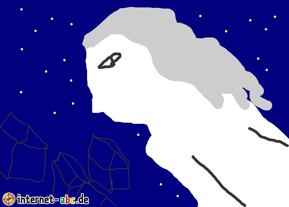 Ein Geist fliegt, bei Nacht über die Häuser.