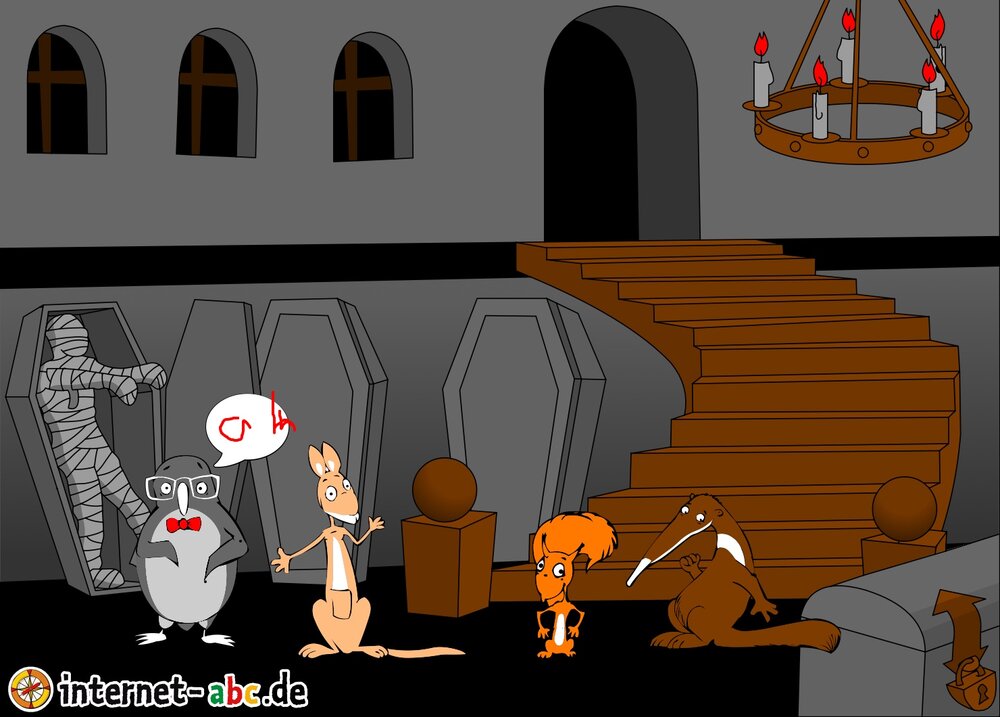 Gruseln mit Eddie, Flizzy, Percy und Jumpy - auf dem Friedhof oder in einem einsamen Schloss! Fledermäuse und Gespenster kreisen um sie herum. Malt Halloween-Bilder und schreibt Geschichten dazu!