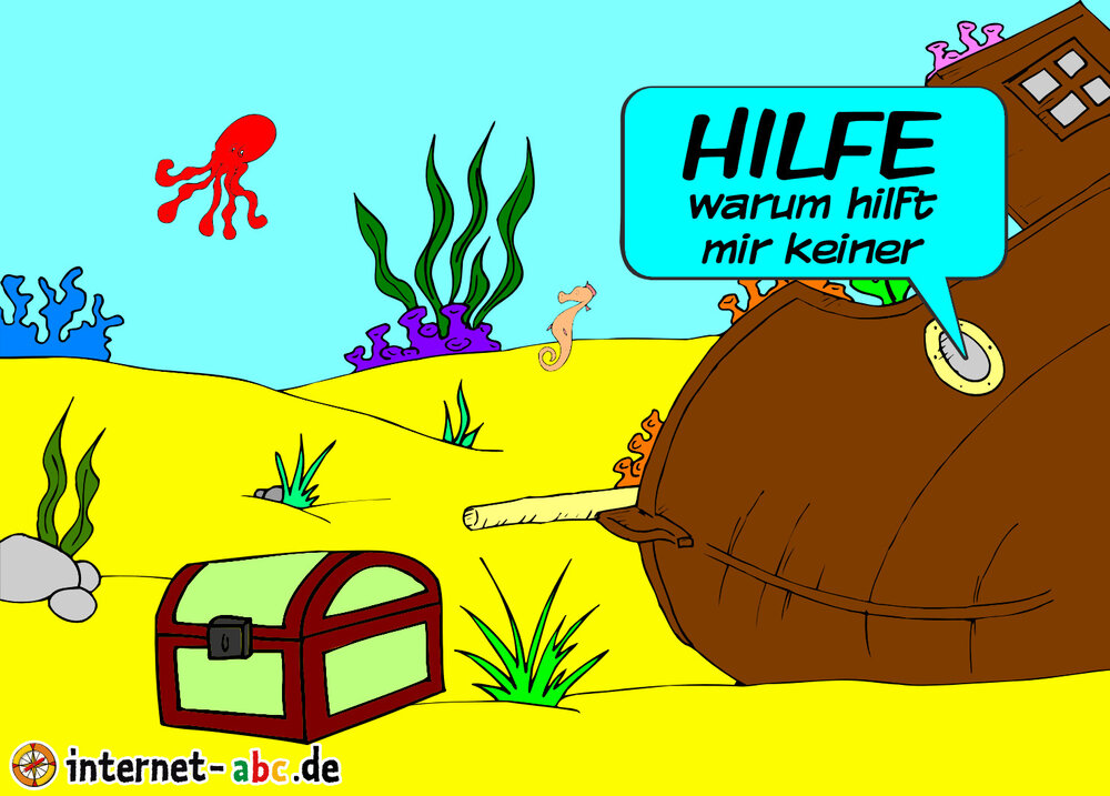 Ein Mensch war noch im schiff er schrie um Hilfe es hörte ihn aber keiner uns so ertrunk er ein Seeferchen hörte ihn und brachte ihn an Land der Taucher übeerlebte nur ganz knap