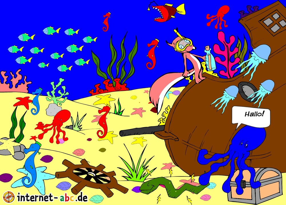 Hier kannst du sehen, welche Bilder es schon zum Thema "Tiefsee" gibt. Klicke auf ein Bild: Auf der kommenden Seite kannst du das größere Bild anschauen und die Geschichte dazu lesen. Du kannst einzelne Bilder auch bewerten und etwas dazu schreiben.