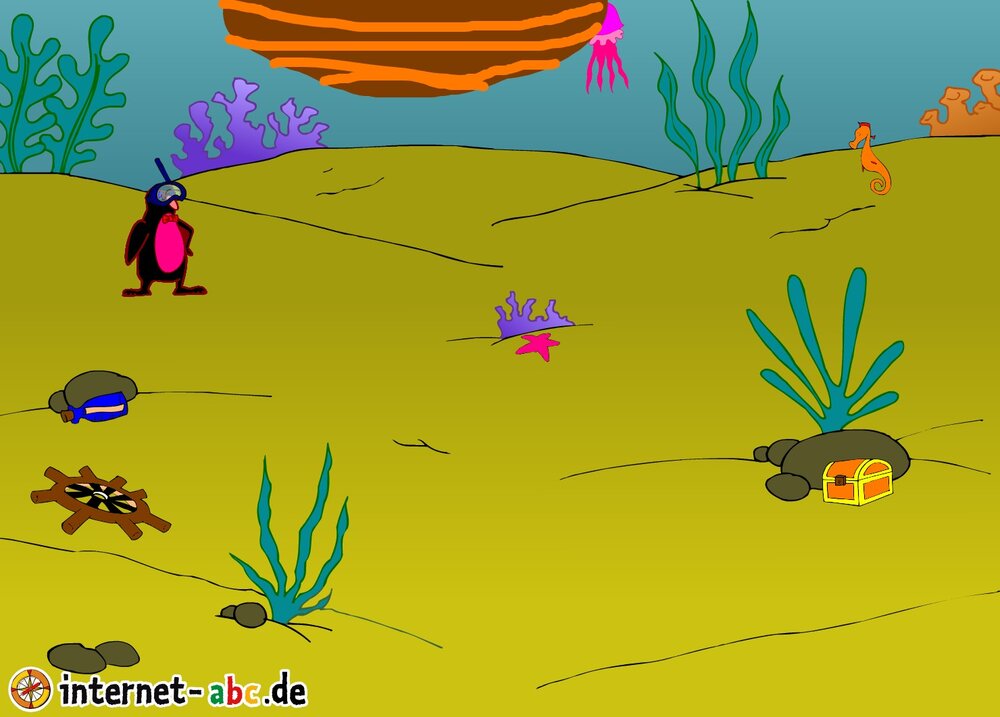 Mit Eddie, Jumpy, Flizzy und Percy geht es ins Wasser. Tief unten im Meer lässt du sie tauchen. Oder ihr  entdeckt Schatztruhen und beobachtet bunte Fische.
