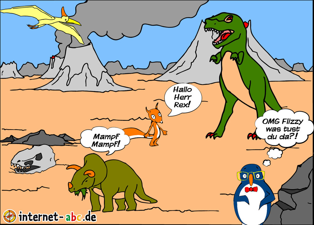 Flizzy und Eddie sind im Tal der Dinosaurier gelandet. Flizzy begrüßt ganz freundlich die Dinos, doch Eddie hat Angst. ;-)
