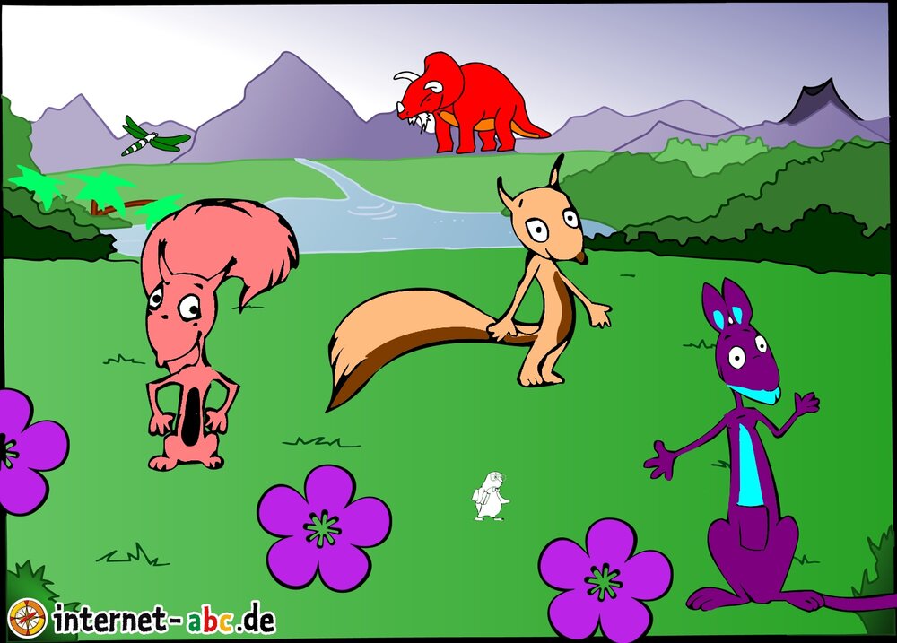Dinosaurier, Flugsaurier – wo sind Eddie, Jumpy, Flizzy und Percy da nur hingekommen? In eine Welt vor vielen Tausend Jahren? Oh je. Male ein spannendes Bild und schreibe etwas dazu!