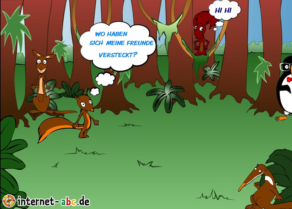 Flizzy spielt mit ihren Freunden im Wald verstecken. Sie muss suchen