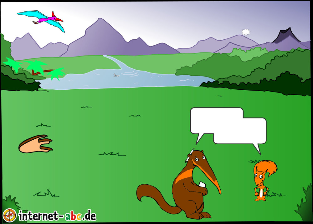 Dinosaurier, Flugsaurier – wo sind Eddie, Jumpy, Flizzy und Percy da nur hingekommen? In eine Welt vor vielen Tausend Jahren? Oh je. Male ein spannendes Bild und schreibe etwas dazu!