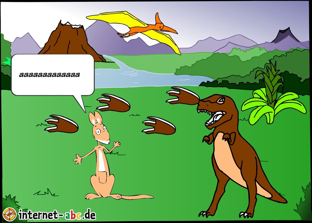 Dinosaurier, Flugsaurier – wo sind Eddie, Jumpy, Flizzy und Percy da nur hingekommen? In eine Welt vor vielen Tausend Jahren? Oh je. Male ein spannendes Bild und schreibe etwas dazu!