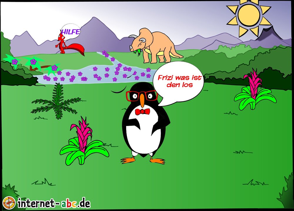 Dinosaurier, Flugsaurier – wo sind Eddie, Jumpy, Flizzy und Percy da nur hingekommen? In eine Welt vor vielen Tausend Jahren? Oh je. Male ein spannendes Bild und schreibe etwas dazu!