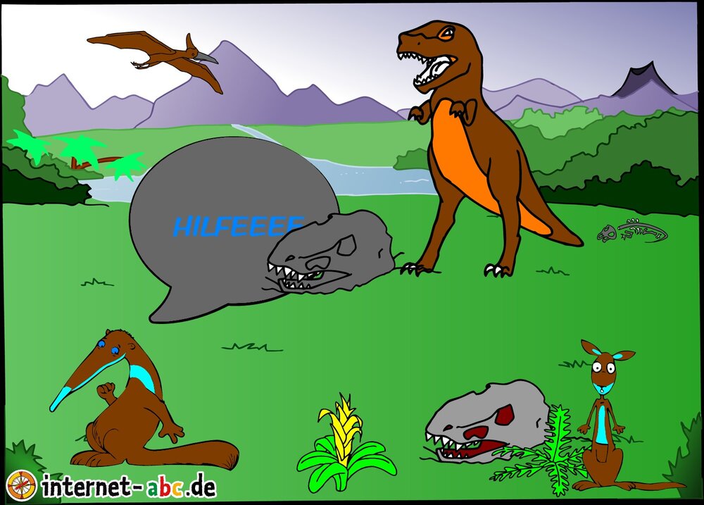 Dinosaurier, Flugsaurier – wo sind Eddie, Jumpy, Flizzy und Percy da nur hingekommen? In eine Welt vor vielen Tausend Jahren? Oh je. Male ein spannendes Bild und schreibe etwas dazu!