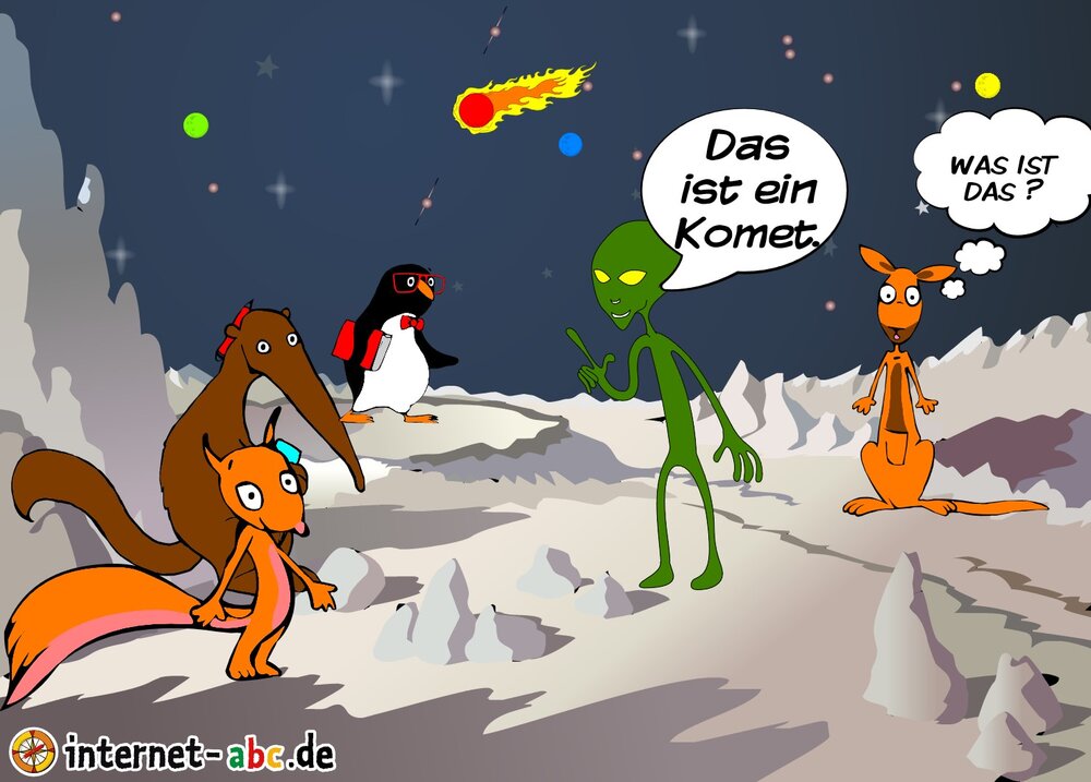 ein Alien gib Unterricht auf dem Mond nur das Känguru weiß nichts dafon und wundert sich
