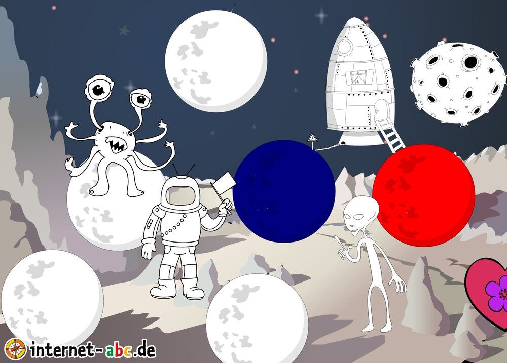 Mit der Rakete fliegen die 4 Internet-ABC-Tiere in den Weltraum. Was sie dort sehen und erleben, könnt ihr in diesem Baukasten malen und erzählen.