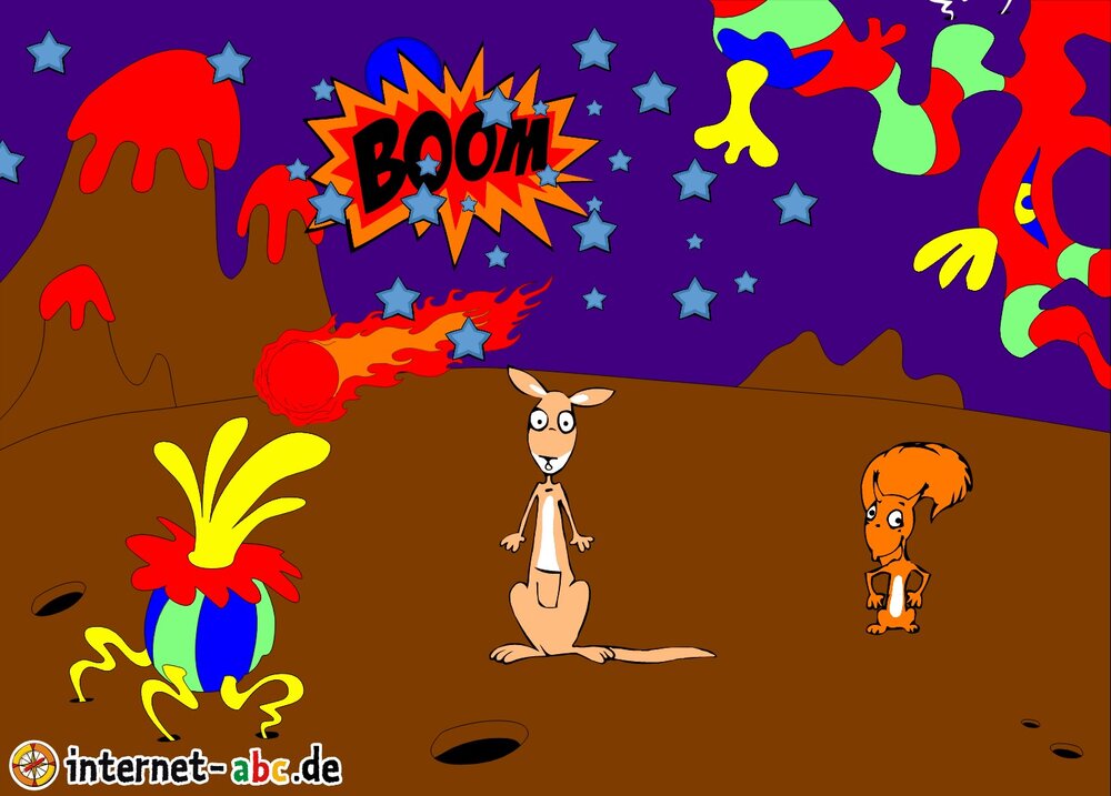 Mit der Rakete fliegen die 4 Internet-ABC-Tiere in den Weltraum. Was sie dort sehen und erleben, könnt ihr in diesem Baukasten malen und erzählen.