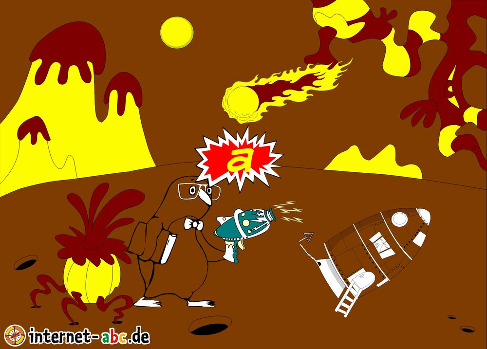 Mit der Rakete fliegen die 4 Internet-ABC-Tiere in den Weltraum. Was sie dort sehen und erleben, könnt ihr in diesem Baukasten malen und erzählen.