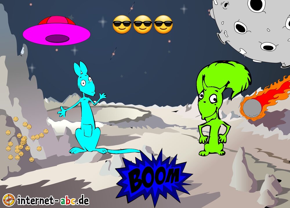 Mit der Rakete fliegen die 4 Internet-ABC-Tiere in den Weltraum. Was sie dort sehen und erleben, könnt ihr in diesem Baukasten malen und erzählen.