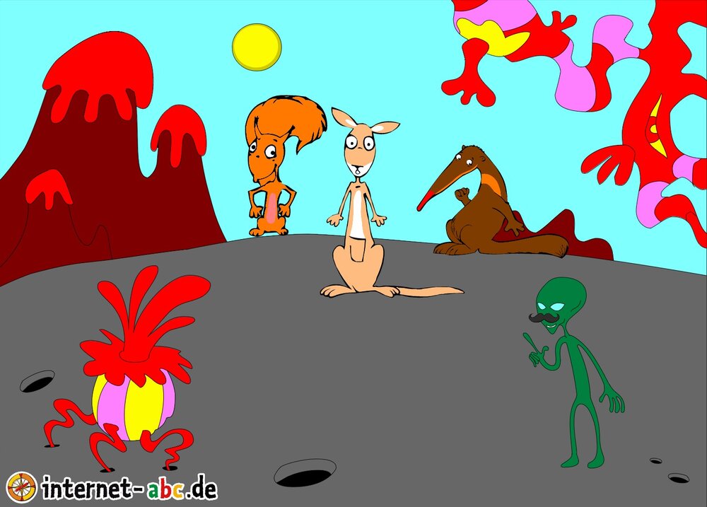 Mit der Rakete fliegen die 4 Internet-ABC-Tiere in den Weltraum. Was sie dort sehen und erleben, könnt ihr in diesem Baukasten malen und erzählen.