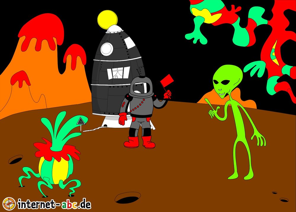 Mit der Rakete fliegen die 4 Internet-ABC-Tiere in den Weltraum. Was sie dort sehen und erleben, könnt ihr in diesem Baukasten malen und erzählen.