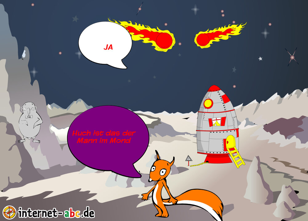 Mit der Rakete fliegen die 4 Internet-ABC-Tiere in den Weltraum. Was sie dort sehen und erleben, könnt ihr in diesem Baukasten malen und erzählen.
