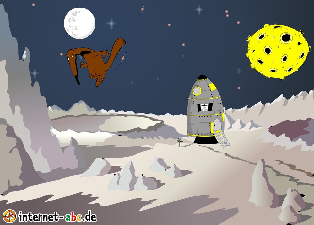 Mit der Rakete fliegen die 4 Internet-ABC-Tiere in den Weltraum. Was sie dort sehen und erleben, könnt ihr in diesem Baukasten malen und erzählen.