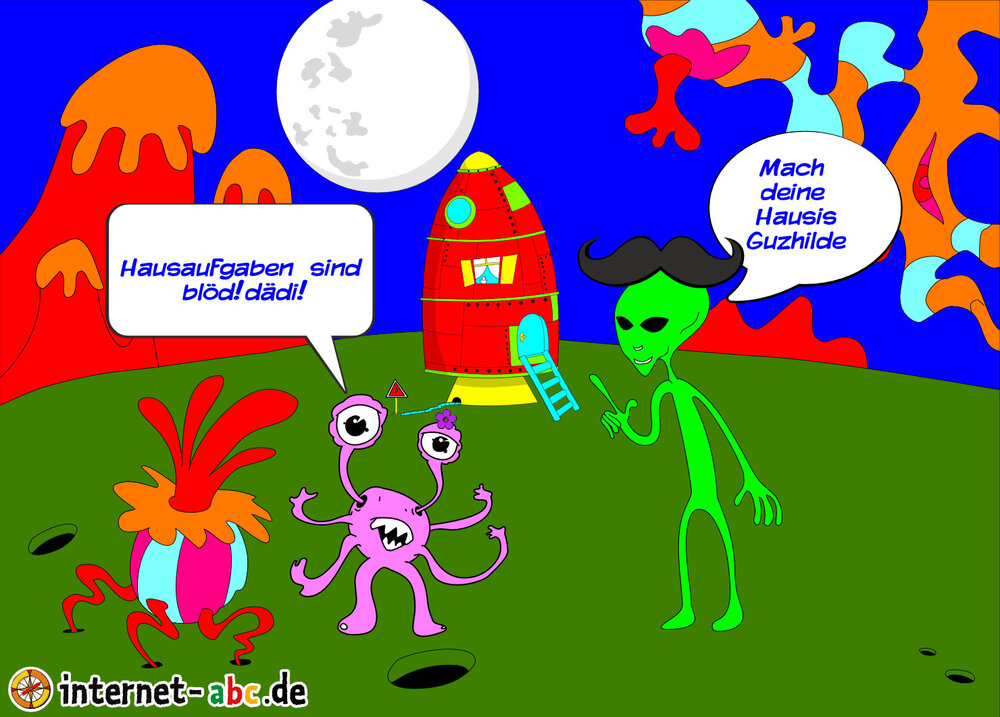 Mit der Rakete fliegen die 4 Internet-ABC-Tiere in den Weltraum. Was sie dort sehen und erleben, könnt ihr in diesem Baukasten malen und erzählen.