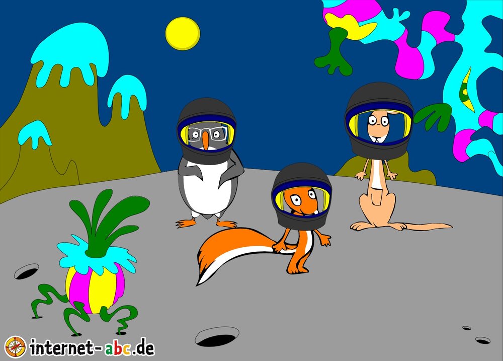 Mit der Rakete fliegen die 4 Internet-ABC-Tiere in den Weltraum. Was sie dort sehen und erleben, könnt ihr in diesem Baukasten malen und erzählen.