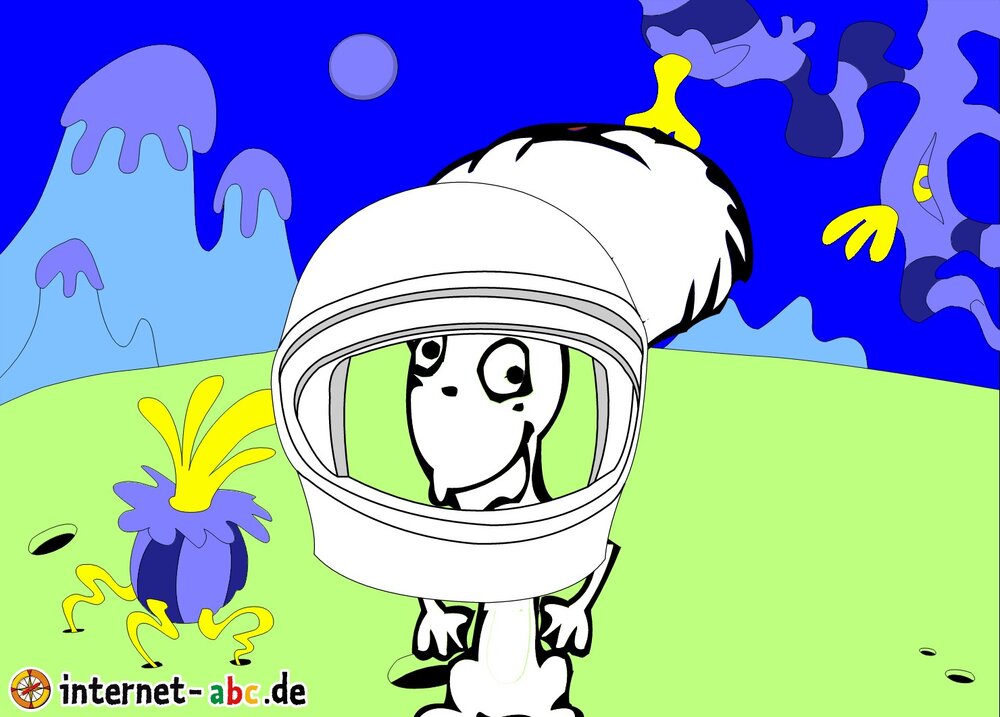 Mit der Rakete fliegen die 4 Internet-ABC-Tiere in den Weltraum. Was sie dort sehen und erleben, könnt ihr in diesem Baukasten malen und erzählen.