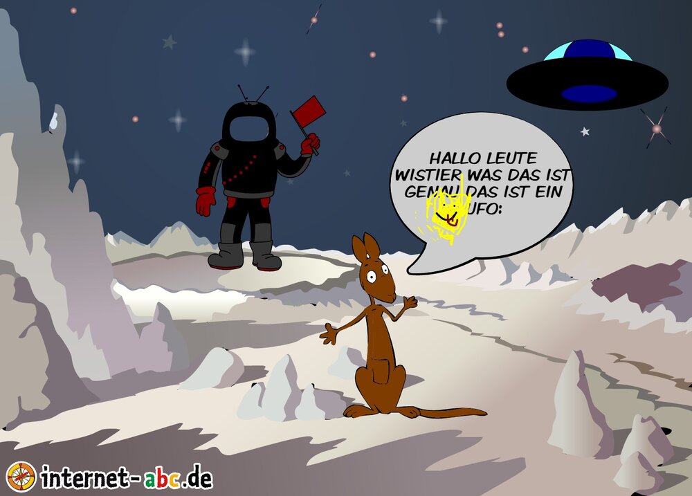 Mit der Rakete fliegen die 4 Internet-ABC-Tiere in den Weltraum. Was sie dort sehen und erleben, könnt ihr in diesem Baukasten malen und erzählen.