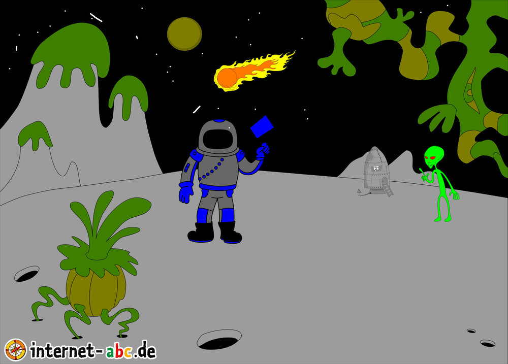 Mit der Rakete fliegen die 4 Internet-ABC-Tiere in den Weltraum. Was sie dort sehen und erleben, könnt ihr in diesem Baukasten malen und erzählen.
