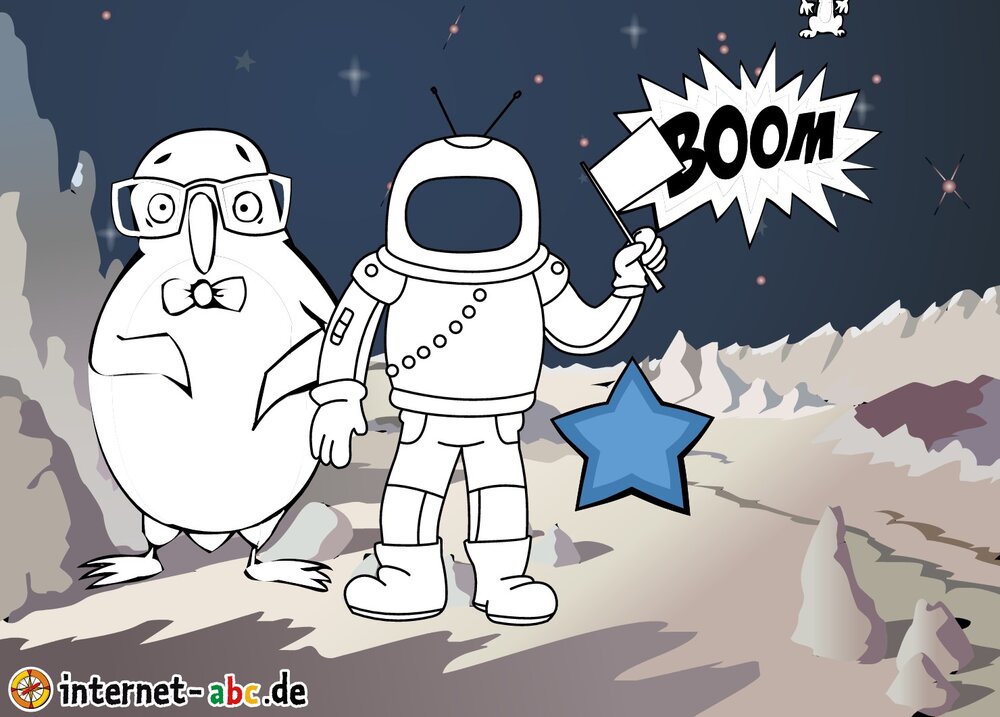 Mit der Rakete fliegen die 4 Internet-ABC-Tiere in den Weltraum. Was sie dort sehen und erleben, könnt ihr in diesem Baukasten malen und erzählen.