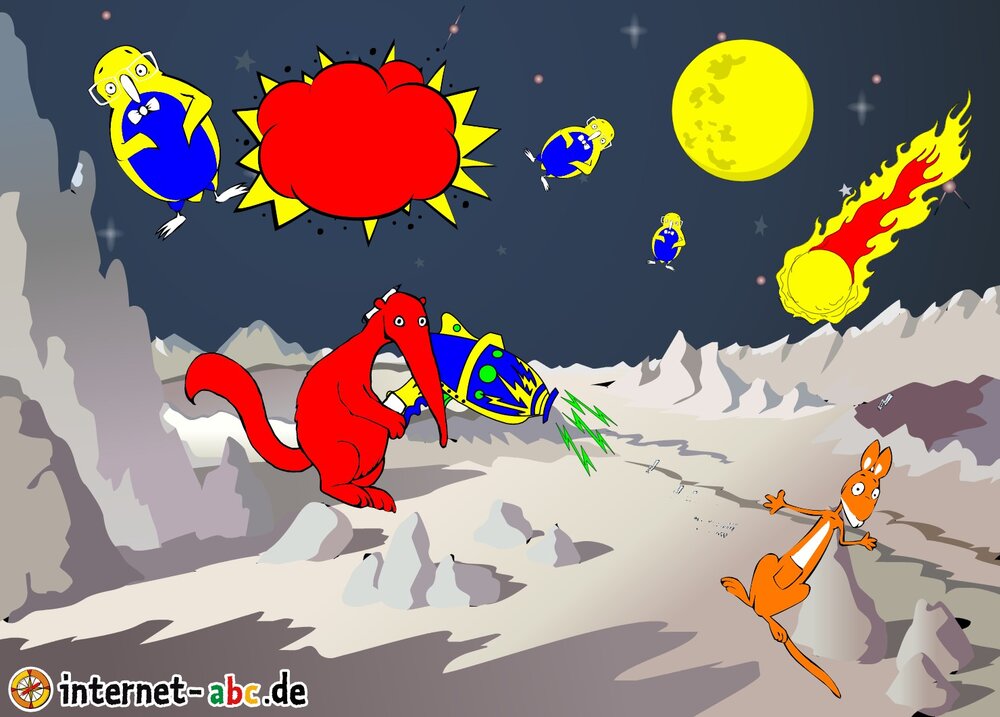 Mit der Rakete fliegen die 4 Internet-ABC-Tiere in den Weltraum. Was sie dort sehen und erleben, könnt ihr in diesem Baukasten malen und erzählen.