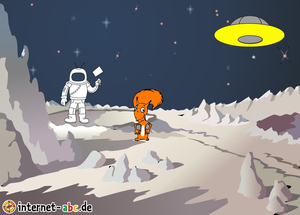 Mit der Rakete fliegen die 4 Internet-ABC-Tiere in den Weltraum. Was sie dort sehen und erleben, könnt ihr in diesem Baukasten malen und erzählen.