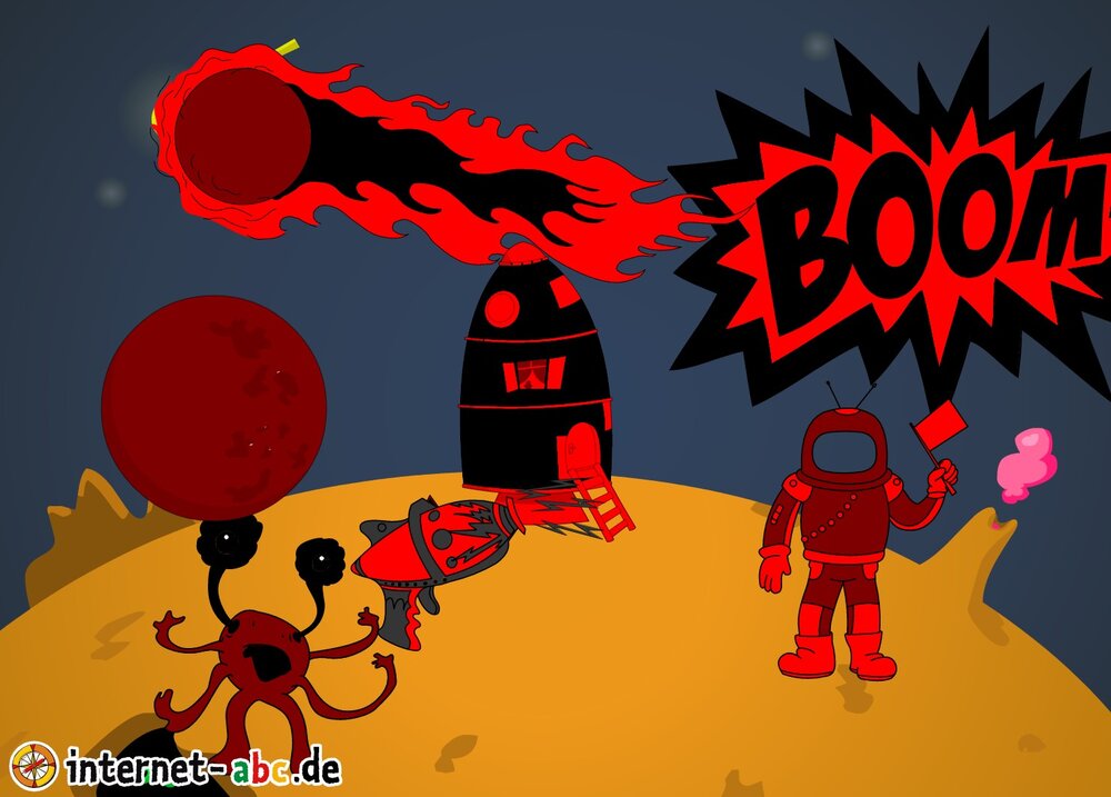 Mit der Rakete fliegen die 4 Internet-ABC-Tiere in den Weltraum. Was sie dort sehen und erleben, könnt ihr in diesem Baukasten malen und erzählen.