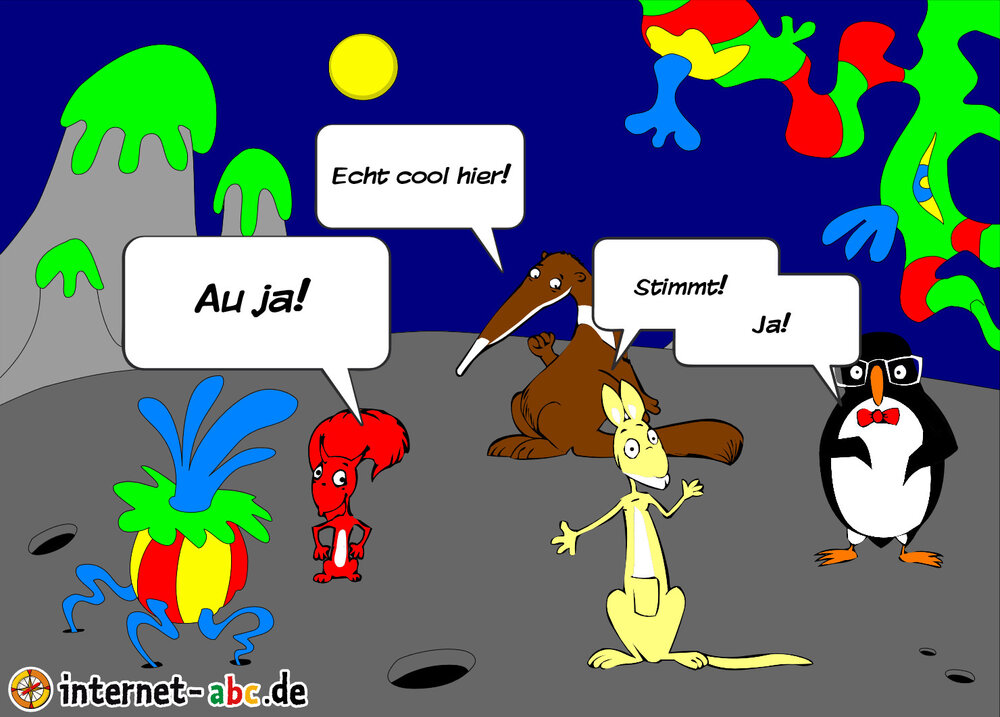 Mit der Rakete fliegen die 4 Internet-ABC-Tiere in den Weltraum. Was sie dort sehen und erleben, könnt ihr in diesem Baukasten malen und erzählen.