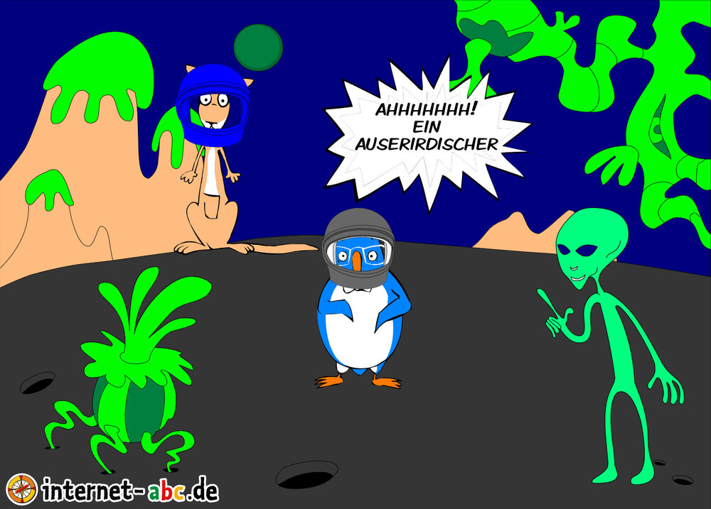 Mit der Rakete fliegen die 4 Internet-ABC-Tiere in den Weltraum. Was sie dort sehen und erleben, könnt ihr in diesem Baukasten malen und erzählen.