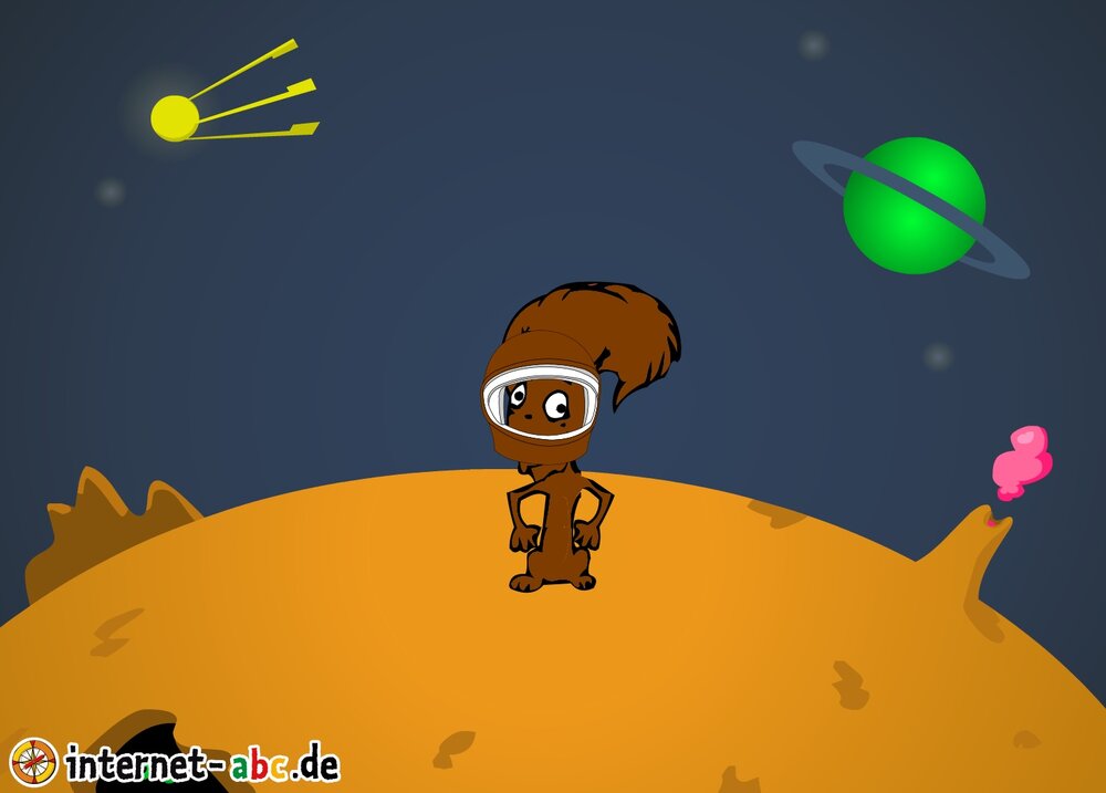 Mit der Rakete fliegen die 4 Internet-ABC-Tiere in den Weltraum. Was sie dort sehen und erleben, könnt ihr in diesem Baukasten malen und erzählen.