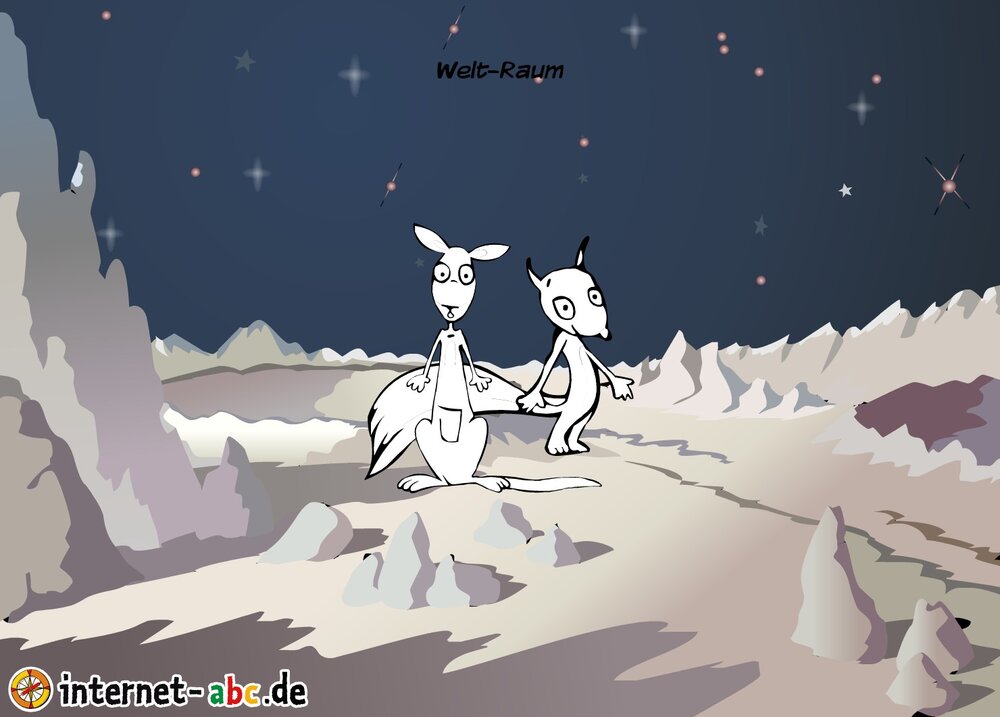 Mit der Rakete fliegen die 4 Internet-ABC-Tiere in den Weltraum. Was sie dort sehen und erleben, könnt ihr in diesem Baukasten malen und erzählen.